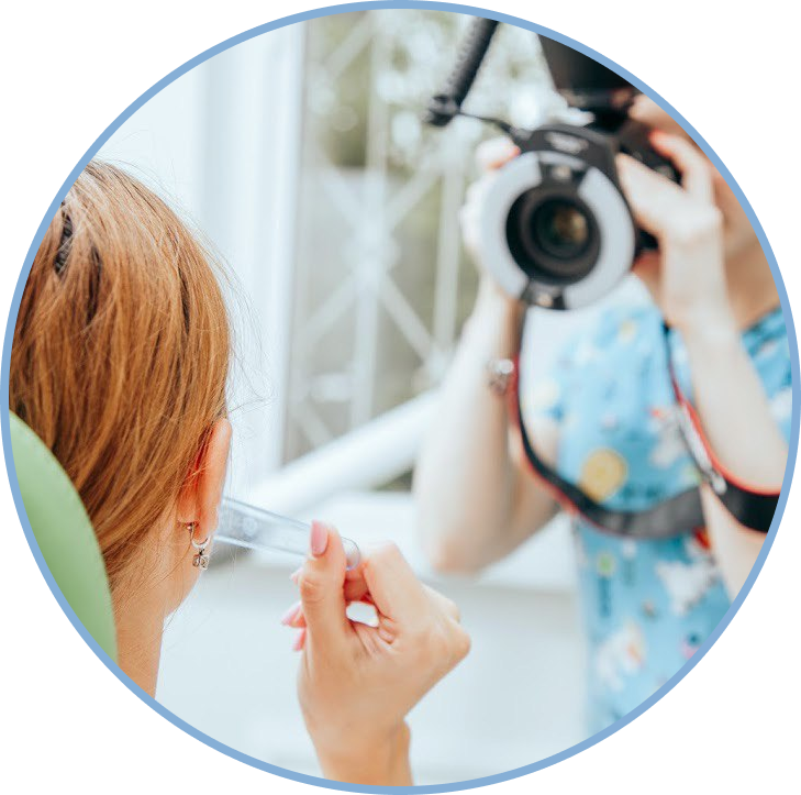 Серия внутриротовых фотографий зубов и их смыкания, а так же портретная съёмка в различных ракурсах.